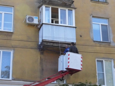 Аварийный балкон над гастрономом № 26 уже ремонтируют.