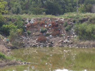 На этом проблема с отходами в нашем городе не заканчивается, а только начинаются. Явный тому пример – небольшая балка в районе парка «Юбилейный» (в районе пересечения ул. Шкадинова и ул. Остапа Вишни), которая за последнее время превращается в свалку крупногабаритных отходов (в основном строительные материалы). По краям самой балки уже образовались немаленькие кучи мусора. Как ни странно, на ее дне находиться небольшое озерцо, в котором водиться рыба и утки. Мало того, жители поселка без проблем занимаются рыболовлей.
