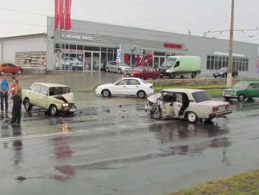 «Шестерка» ехала по ул. Орджоникидзе в сторону Нового Света, а «семерка» ей навстречу. По словам водителя «шестерки», водитель ВАЗа 7-й модели из-за лужи на дороге не справился с управлением и выехал на встречную полосу (в момент, когда произошло ДТП, в Краматорске шел ливень, и дорога была скользкой).