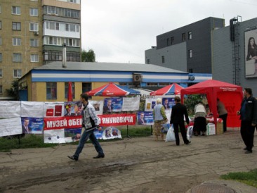 Сегодня, около 09.30 утра, в Краматорске зарегистрирована попытка уничтожить экспонаты передвижной выставки под названием "Музей обещаний Януковича", который со вчерашнего дня разместили возле Крытого рынка представители городской организации политической партии "Удар", сообщает "ОбщеЖитие"