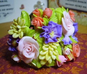 - Источником моих знаний стал интернет. Сейчас я использую несколько техник работы с пластикой. Это и плавный переход цвета для большей реалистичности, скажем, тех же лепестков цветка, филигрань, технику трости. В основном, в моих работах представлены цветочные композиции в миниатюре. Создать маленький цветок в реалистичном виде, особенно когда таких цветочков в украшении штук 50 - нелегкая задача.