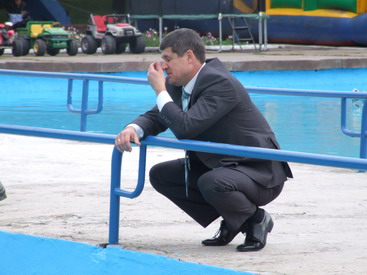 Вокруг фонтана в сквере Профсоюзов прогуливается заместитель мэра Андрей Бессонный. Работой маленьких дополнительных фонтанчиков он явно не доволен. «Я думал, что они будут работать как на картинке – прям вот так высокие струи выдавать», - разводя руки вверх, рассказывает заместитель мэра. Бытовые фонтанчики предательски продолжали брызгать не далеко и в разные стороны. «Не получилось сделать то, что задумывали. Будем убирать», - бросил Андрей Бессонный, проходя мима журналистов.