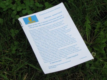 Как сообщает "ОбщеЖитие" утром 22 сентября в воздухе над старогородским рынком объявились два парапланериста, чьи летательные аппараты были оснащены двигателями, что позволяло летунам выписывать в небе самые разнообразные пируэты. И не успел народ опомниться, как ему на головы посыпались вот такие листовки: