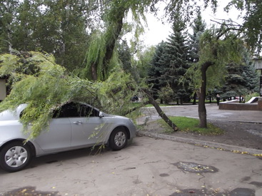 Сайт областного МЧС предупреждает о сильном ветре на всей территории Украины (в пределах 15-20 м/с), а по Украине объявлено штормовое предупреждние. Порыров не выдерживают деревья - на них обламываются ветки. Сегодня возле десткой поликлиники № 3 на автомобиль, стоящий на парковке, с дерева упала большая ветка. К счастью, физически никто не пострадал, но, по словам владельца. автомобиль получил серьезные повреждения.