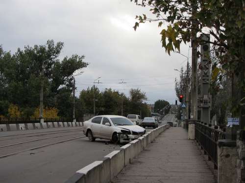 Водитель автомашины SKODA, по неизвестной причине не справился с управлением и врезался в разделительное ограждение моста. По словам очевидцев, иномарка двигалась в сторону Нового Света, и превысив скорость, в буквальном смысле подлетела на рельсах, так что остались следы на асфальте. О судьбе самого водителя информации пока нет, ибо он покинул место происшествия до прибытия ГАИ.