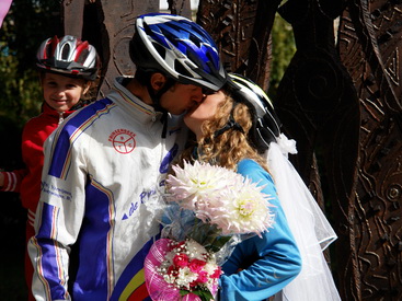 28-го сентября к Краматорскому ЗАГСу подъехал необычный кортеж. Молодожены и приглашенные приехали расписываться не на автомобилях, как это обычно принято, а на велосипедах.