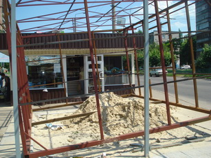 На днях же новые металлические конструкции появились на остановке общественного транспорта в районе "Крытого рынка" на улице Парковой. Значит, в скором будущем здесь возникнет очередной магазинчик или торговая точка. Можно было бы порадоваться столь стремительному развитию торговли, если бы не жалобы пассажиров в редакцию "Новостей". Во-первых, им не нравится сам факт строительства, во-вторых, они бояться совсем лишиться остановки.