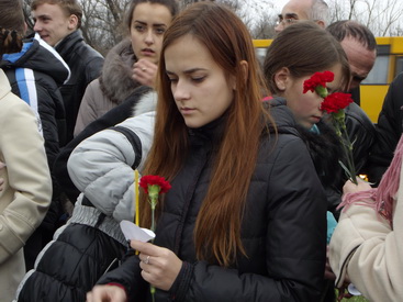 Возле памятного знака, который расположен по ул. Орджоникидзе, собрались учащиеся краматорских школ, представители исполкома, казачества и общественных организаций.