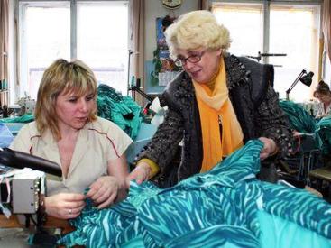 (На фото: директор Краматорской швейной фабрики Раиса Трунова начинает свой рабочий день в цехах. Швее Татьяне Флисник предстоит шить платья для модниц Беларуси.)