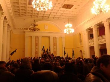 Как стало известно "НК" на данный момент митингующие с Евромайдна "взяли" здание киевской госадминистрации.