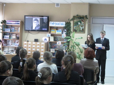 Во время встречи школьники посмотрели небольшой фильм о творчестве актера, отрывки из кинофильмов с участием Быкова, слушали стихи, посвященные нашему земляку.