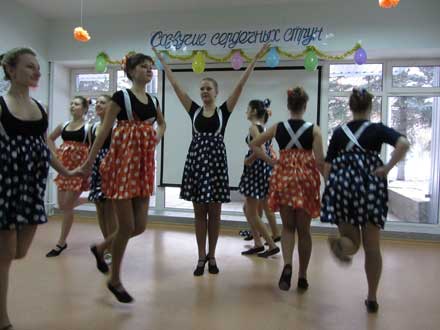 Поздравить слушателей Центра реабилитации пришли студенты ДГМА, КЭГИ, Краматорского технологического техникума. Они пели, танцевали, команда КВН из КЭГИ показывала сценки, студентки КТТ устроили настоящий показ мод, а гостья праздника Светлана Красовская представила зрителям настоящий индийский танец.