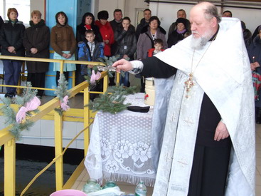 Обряд освещения воды начался около 12-30 на территории фильтровальной станции по улице Юбилейной. Обряд провел настоятель Свято-Покровского храма отец Николай.