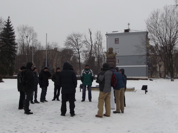Если городские власти утром молчаливо возложили цветы и не произонсили речей в честь сегодняшнего Дня Соборности, то краматорские активисты решили также организовать свое мини-собрание.