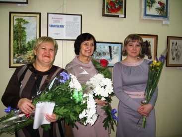 Родные, друзья, знакомые каждой из мастериц пришли поздравить их с открытием выставки. Живые цветы были очень к лицу этим милым женщинам.