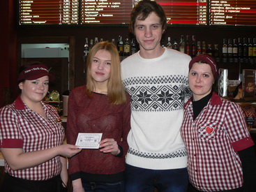 Вчера, 29-го января, победители первой недели фотоконкурса «Love is…» , по мнению пиццерии New-York-Street-Pizza, влюбленная пара Владислав Годунов и Екатерина Петракова (на фото) получили обещанный подарочный сертификат на 100 гривен на посещение пиццерии.