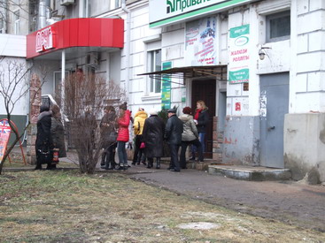 Люди начали активно снимать деньги. И уже через несколько часов большинство банкоматов оказались пустыми, а у остальных возникли проблемы в связи с центральным сервером в Днепропетровске. С перебоями работали и терминалы банка.