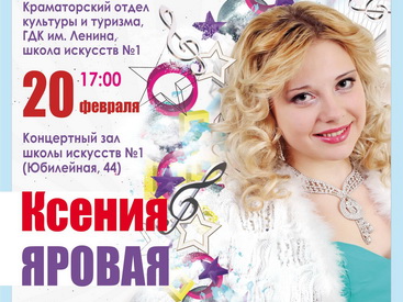 Завтра, 28-го февраля, в Школе искусств № 1 в 17.00 пройдет творческий вечер краматорской исполнительницы Ксении Яровой.