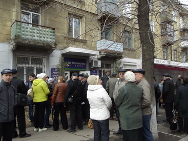 На сегодняшний день у краматорчан лопнуло терпение. Руководитель краматорского отделения банка пообещал, что сегодня в наш город приедет представитель правления из Донецка. Однако пока никого из руководства "Промэкономбанка" не было.