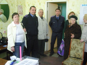 Присутствующий на встрече заместитель начальника отдела участковых инспекторов милиции Максим Страшненко рассказал о необходимых мерах профилактики, чтобы не стать жертвой преступлений. Рассказал о таких видах преступных действий как телефонные мошенничества, когда от имени сотрудников милиции у граждан требуют денежные средства за освобождение родственника, якобы задержанного правоохранителями. Максим Страшненко призвал всех быть бдительными, не бежать в отделения банков, чтобы перечислить деньги на указанный мошенниками счет, а в первую очередь связаться с родственником, выяснить, все ли с ним в порядке, уточнить в органах внутренних дел действительно ли у них находится такой-то человек. В последнее время случаи подобного мошенничества стали достаточно частыми в нашем городе. Также он обратил внимание на мошенников, которые представляются сотрудниками социальных и коммунальных служб, предлагают различный товар по низким ценам и под различными предлогами предпринимают попытки попасть в жилище. В таких ситуациях крайне важно соблюдать бдительность.