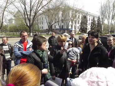 Сегодня под зданием исполкома собрались краматорские мамы, которым задерживают выплату пособий.