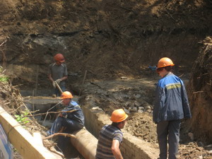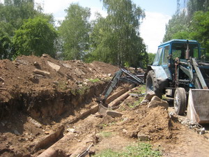 Ремонт теплотрассы проводят на площади Ленина в районе ДКиТ НКМЗ. Огромные ямы в центре Краматорска рабочие вырыли для замены устаревших металлических труб на современные полиуретановые.