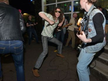 На этот раз принимало музыкантов кафе "Арка". В праздник Первомая, несмотря на сложную ситуацию в городе, музыканты развлекали горожан прямо под открытым небом.