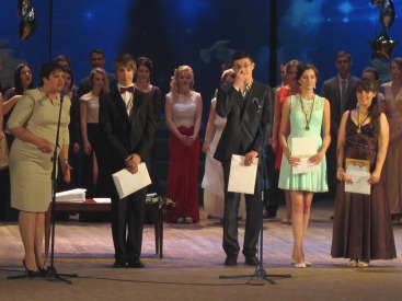 Выпускной вечер школы № 25 можно назвать вечером воспоминаний. На большом экране были показаны видеоролики, посвященные минувшим годам, которые нынешний выпускники провели в стенах школы.