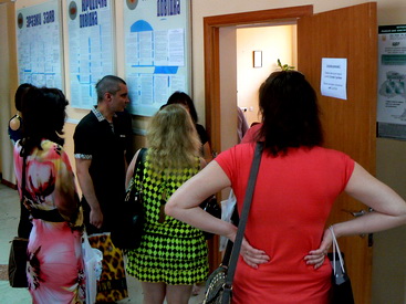 Сегодня, 11-го июня, в здании Краматорского ЗАГСа не продохнуть – внутри помещения около 100 человек. Горожане выстроившись в четыре очереди по 20 человек под каждым кабинетом, пришли получать дубликаты свидетельств о рождении детей и выписок о сведениях об отце, записанных со слов матери.