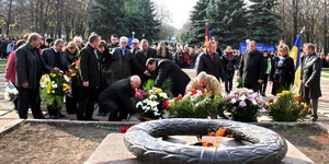 P.S. Конечно, ветераны там были. Двое—трое, не больше. А почему? А потому что Михаил Тихонович Гранкин — председатель краматорской ветеранской организации — отбыл в Киев, где во дворце «Украина» получал специальную грамоту Кабинета министров. А без него никто так и не удосужился вовремя предупредить ветеранов о времени и месте встречи.