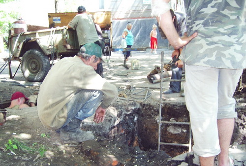 Яму во дворе дома по ул.Ленина, 22 рыл трактор.