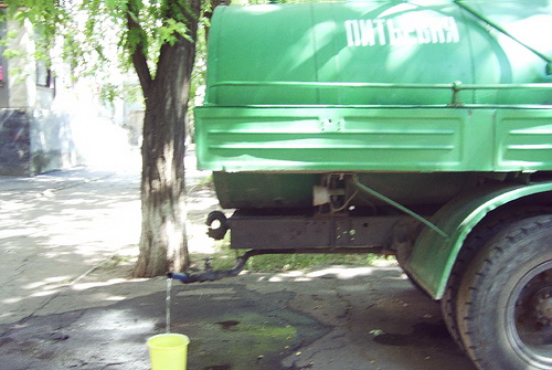 В домах по ул. Ленина, 22 и 24 отключена вода. Питьевую воду для жителей привезли во двор цистерной. Близлежащих домах воду уже включили.