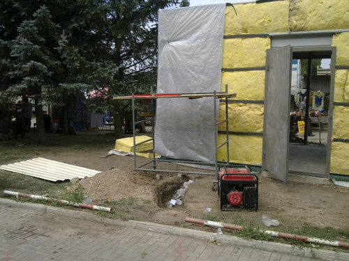 На фото видно ров, прорытый к канализационному люку. Остается вопрос, есть ли разрешение на проведение работ и подключение? И кем оно выдано? Такое близкое размещение канализации и киоска наводит на мысль, что делается всё это "для своих".