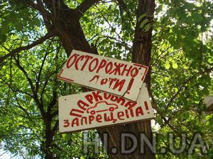 «Осторожно лети!», «Парковка запрещена!». Такие надписи содержатся на предупредительных табличках в одном из дворов по улице Богдана Хмельницкого.