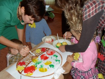 Дети вместе с главными героями праздника, феей Полигоринкой и Кудесницей Осенью, отправились в увлекательное путешествие в сентябринку, октябринку и ноябринку. С феей Полигоринкой убрали урожай с полей и огородов, сделали домашние заготовки овощей и фруктов на зиму; с Кудесницей Осенью побывали в осеннем лесу, подготовили к зимней спячке медвежонка и ежика, напомнили зайчику, что ему пора поменять шубку. Путешествуя, участники преодолевали препятствия, выполняли сложные задания, пели и танцевали. Праздник удался на славу, дети сделали подарок осени – натюрморт, выполненный в нетрадиционной технике (штампы из овощей), Кудесница Осень и фея Полигоринка доказали детям, что они волшебники, превратив натюрморт в огромную корзину с яблоками.