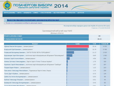 По состоянию на 9-30 Краматорская окружная избирательная комиссия обработала 40.44% голосов.