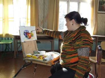 Преподаватель Мельникова Елена Ивановна провела занятия мастер-класс по живописи «Техника живописи гуашью с клеем мастихином» - выполнение несложного натюрморта. Она продемонстрировала наглядно, последовательно все этапы работы – от подготовки холста и материалов до полного завершения задания, включая оформление этюда в раму.