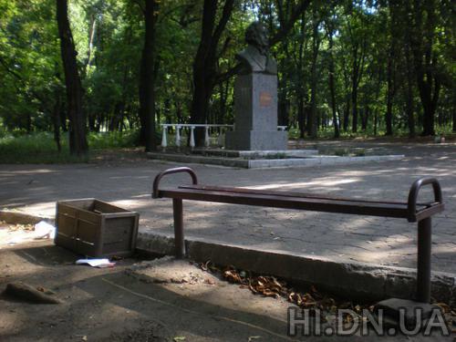 Вместо металлических или бетонных урн на входе в городской парк им. Пушкина можно наблюдать дощатые ящики из-под овощей либо картонные коробки.