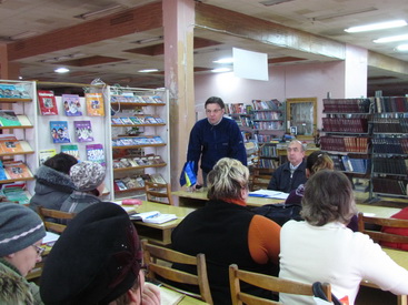 О первых результатах работы по реализации проекта, а также о результатах текущих совместных наработок шла речь во время информационного тренинга для библиотечных работников города. Организаторы и ведущие тренинга - председатель Краматорской городской общественной организации "Фонд развития громады" Станислав Черногор и эксперт проекта Владимир Подыбайло. Библиотекари получили информацию о работе Центра предоставления админуслуг и о состоянии работы по составлению справочника для жителей города.