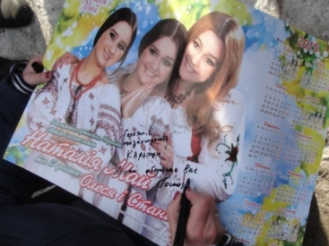 Наталия Май приехала с двумя своими дочками Олесей и Святославой Май, поэтому перед бойцами Нацгвардии предстал коллектив «Родина Май».