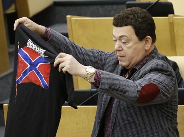 Первый зампред комитета Госдумы по культуре, певец Иосиф Кобзон предложил депутатам Госдумы приобрести футболки с символикой "вежливых людей" и Новороссии, чтобы таким образом поддержать юго-восток Украины. Об этом сообщает ИТАР-ТАСС