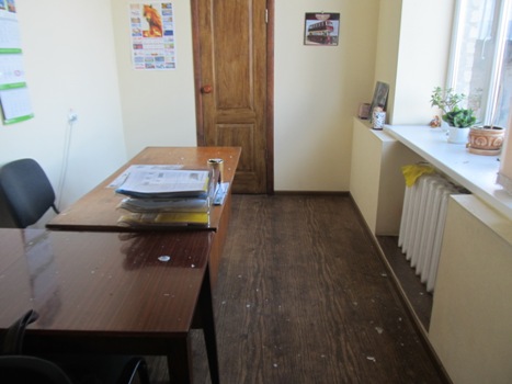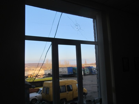 На выходных в Краматорске снова проходили военные учения. В понедельник утром, придя на работу, сотрудники «АТП 11410» увидели в кабинете разбитое пулей стекло.