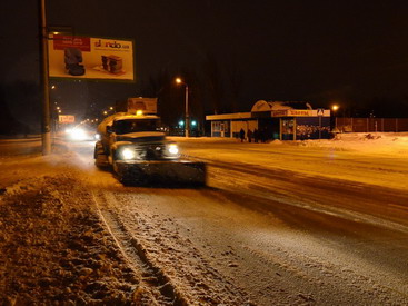 По словам руководителя УЖКХ Сергея Гончаренко, с началом снегопада очищают и посыпают городские дороги 12 единиц специальной техники. Основная работа началась с 18 часов субботы. «Дорожники убирали снег с лиц почти до 3 часов ночи. Ранним утром воскресенья начали убирать шугу. После этого улицы посыпали пескосолевой смесью. Сейчас машины грузятся и готовятся выйти для повторной посыпки», - рассказывает руководитель УЖКХ.