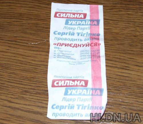 Недавно на сайте краматорского городского совета в разделе «Деятельность политических партий» появилась одна очень занятная информация. Оказывается, что 4 августа кем-то был зафиксирован факт продажи автобусных билетов, на обороте которых была напечатана политическая реклама партии Сергея Тигипко «Сильная Украина».