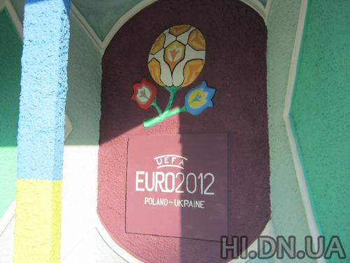 Остановка, оформленная символикой ЕВРО 2012 на улице Орджоникидзе