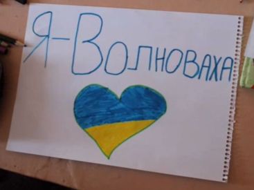 Школьники, вместе с учителями, зажгли свечи и выложили их в форме сердца в знак скорби по погибшим. Ученики помладше рисовали рисунки, на которых было написано "Я-Волноваха" и "Нет Войне!".