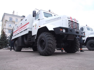 Бронированные медицинские автомобили изготовлены на базе украинского грузовика КРАЗ. Броней усилены не только кузов, в котором будут перевозиться люди, но и все важные узлы и кабина. В бронированном кузове размещено 17 кресел. По словам спасателей, вообще автомобиль рассчитан на долгие марши, следующие единицы будут оборудованы простыми лавками, что позволить брать на борт вдвое больше пассажиров. «Никаких долгих переездов в этих машинах не будет. Для нас главное взять людей и перевести из зоны боев на подконтрольную территорию. Там их будет ждать уже гражданский транспорт», - говорят спасатели.