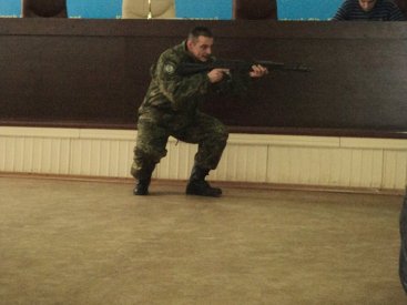 В этот раз к краматорским правоохранителям присоединились коллеги из соседних городов области. Для правоохранителей, которые в ближайшее время отбывают для несения службы в зону АТО, старший преподаватель тренингового центра Винницы, который входит в группу приданных сил в Краматорске, провел инструктаж. Он рассказал о том, что нужно делать, чтобы выжить при артобстрелах, о важнейших правилах безопасности при ведении боевых действий, продемонстрировал варианты обращения с оружием при перемещении с ним на открытой местности и в помещениях. Милиционеры задавали инструктору множество вопросов, на которые получили исчерпывающие практические ответы.