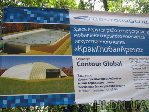 Баннер с изображением макета будущего катка и информацией о фирме, производящей его строительство установлен в парке имени Пушкина. Он находится возле будущего места расположения КрамГлобалАрены. Площадка уже практически расчищена, скоро строители приступят к сборке сооружения.