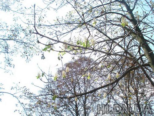 В Краматорске на улице Транспортной в середине августа каштан выпустил свечи. Дерево к удивлению окружающих цветет уже несколько дней.